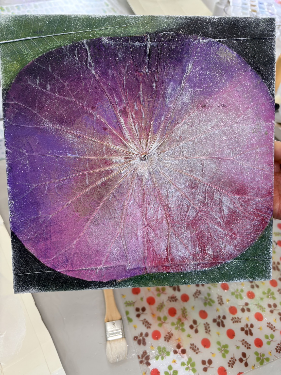 今回は2名様の参加で、蓮の葉のパネルアートです。