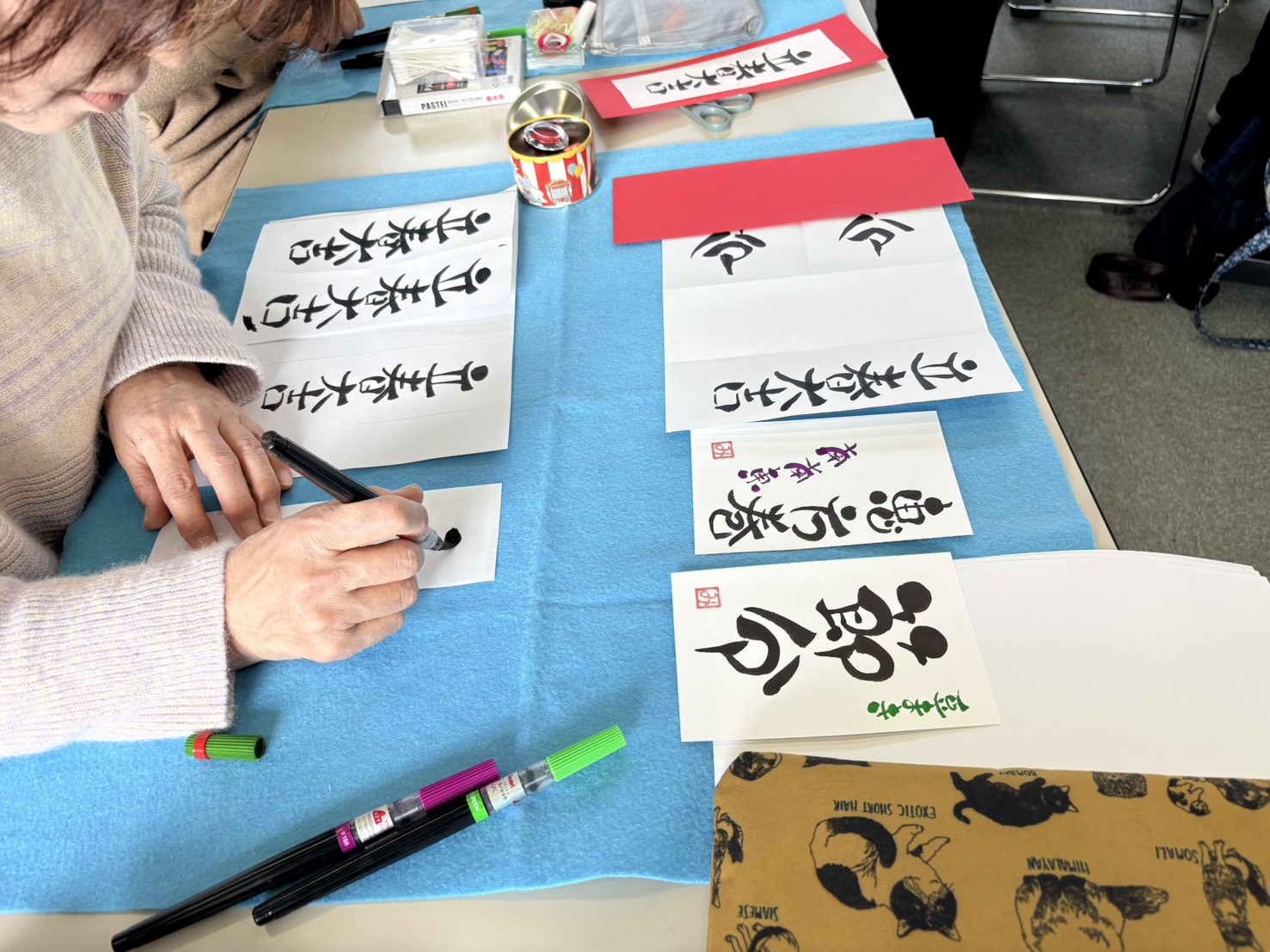 筆文字を書いています。参加者の皆さんが、とにかく楽しい!といって